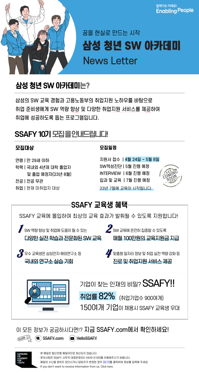 「삼성 청년 SW 아카데미」10기 교육생 모집