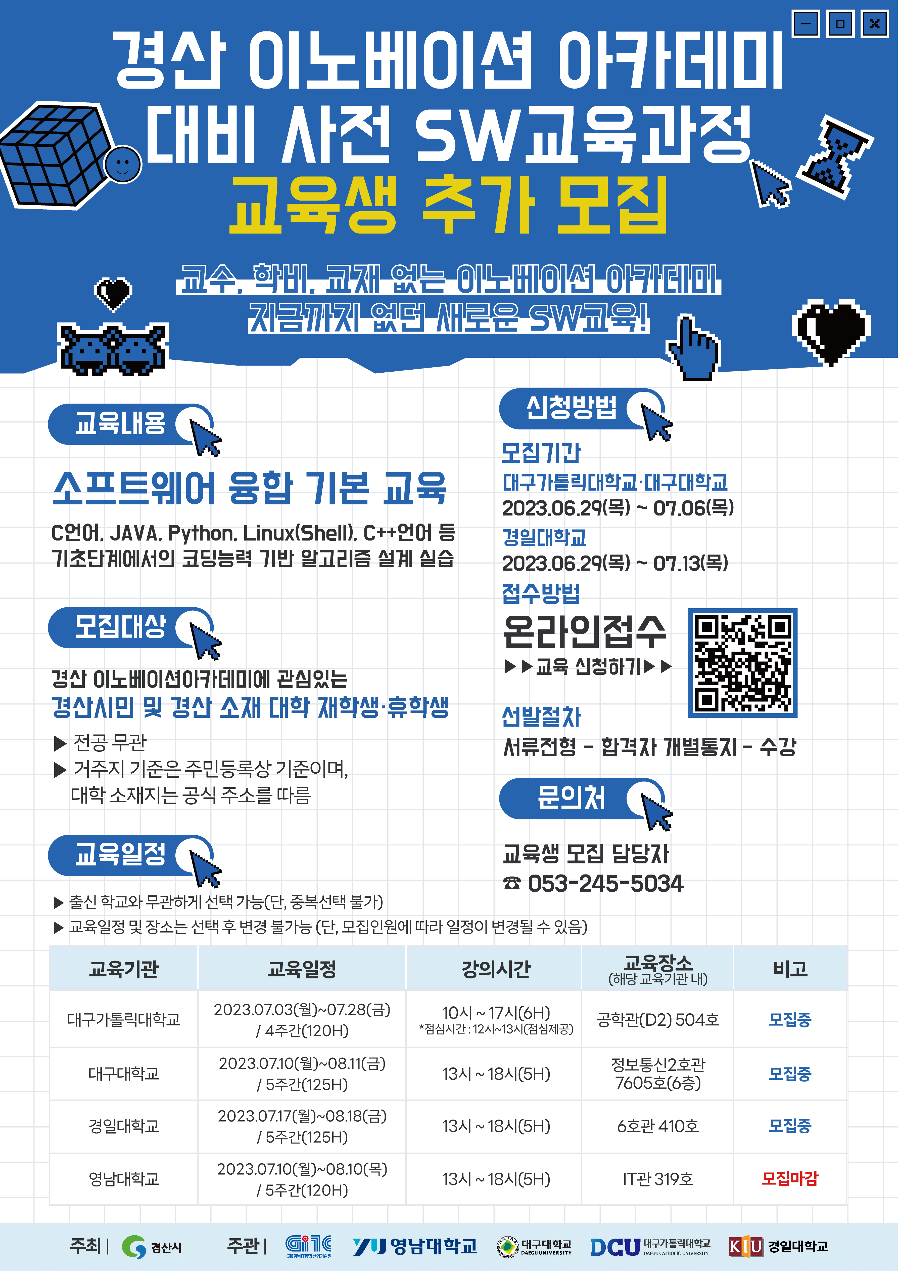 경산 이노베이션 아카데미 준비강좌 교육생 추가모집 안내